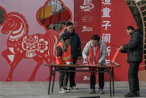 馬年漁村寫福字