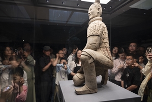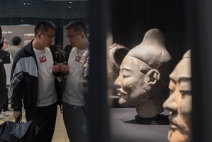 敦煌展廳里的專注